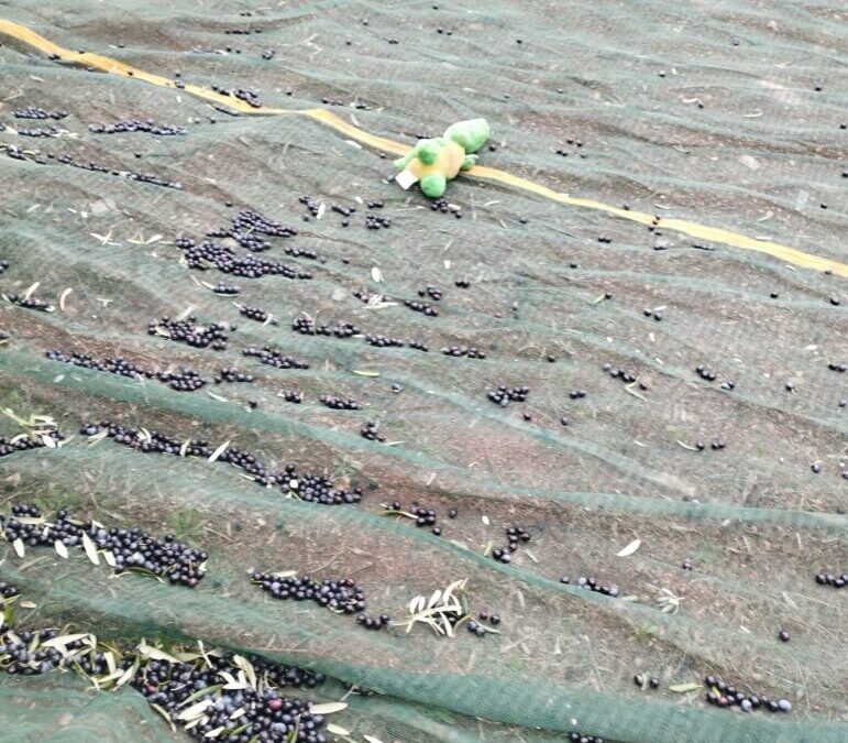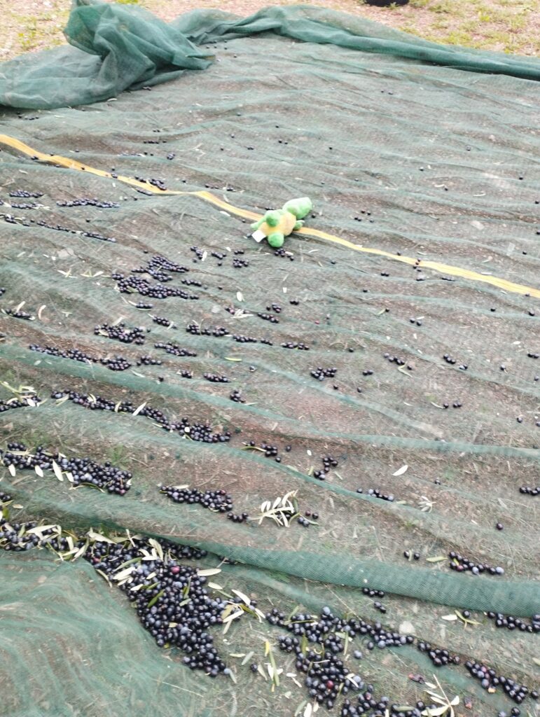 Ajout non prévu dans la récolte 24 mars 2026 Le doudou des « loups », posé là, au milieu des filets et des olives.Quand les chiens récoltent à Terre Rouge…